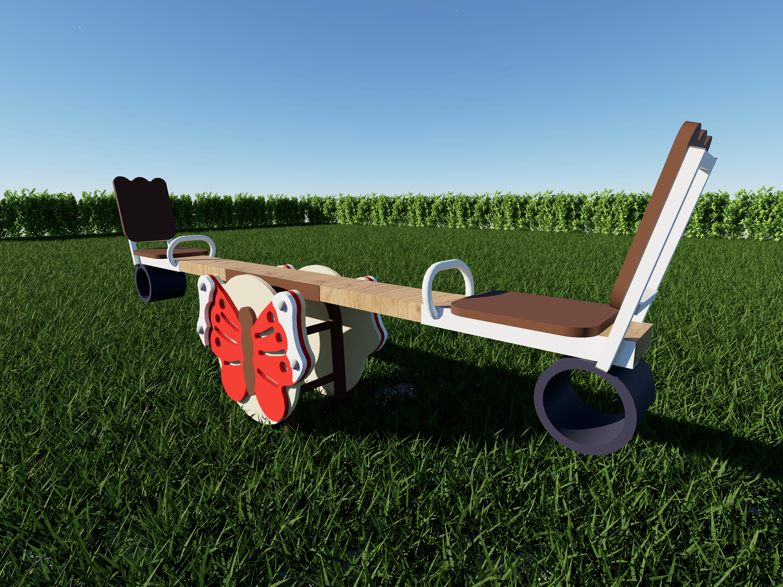 Развивает чувство баланса, координацию движений, ритм и умение договариваться с партнёром по игре. Прекрасный акцент для детских площадок в тематике природы, сада, лета или сказочных превращений — бабочка сразу притягивает взгляд и создаёт атмосферу лёгкости и радости.