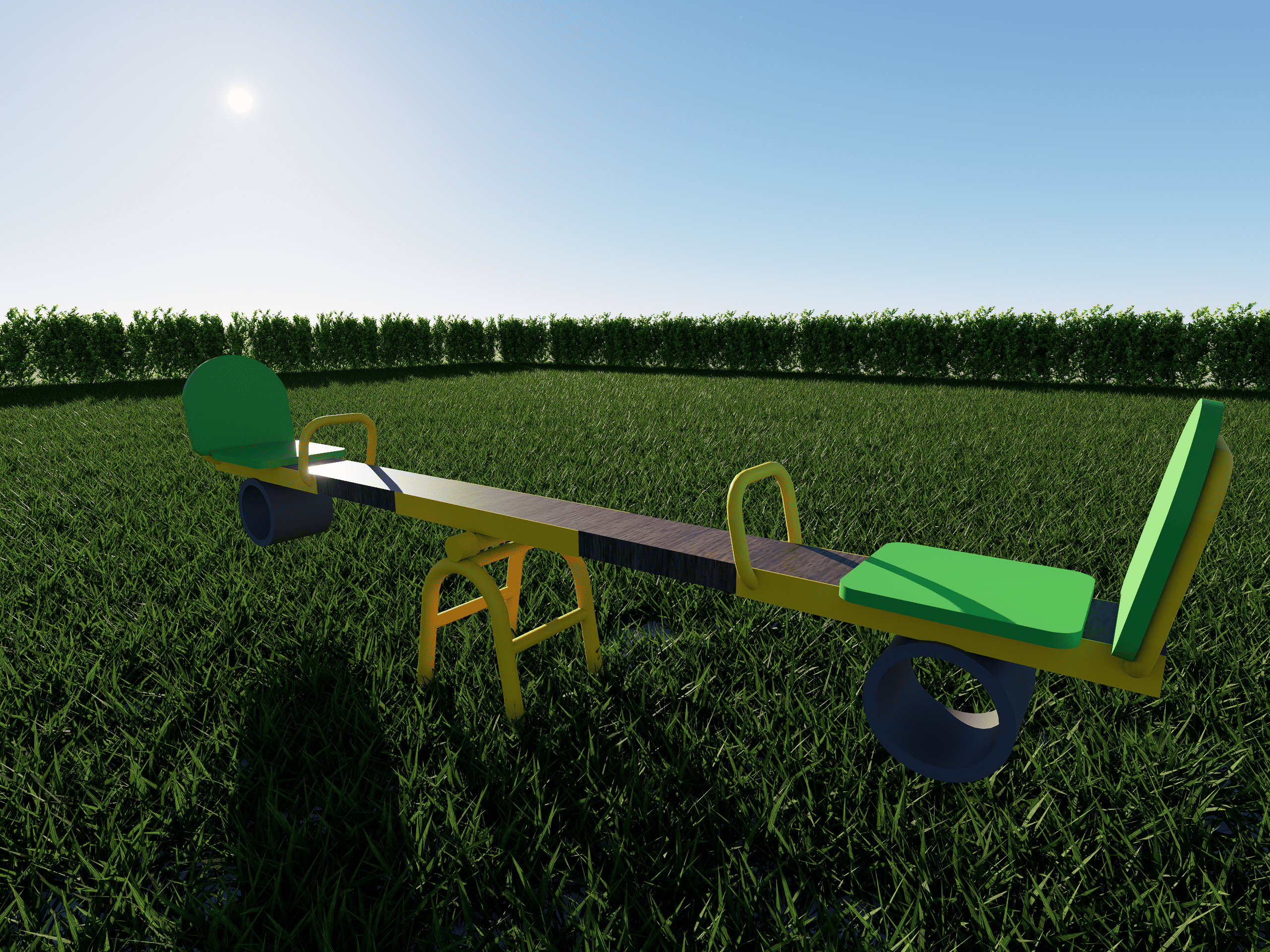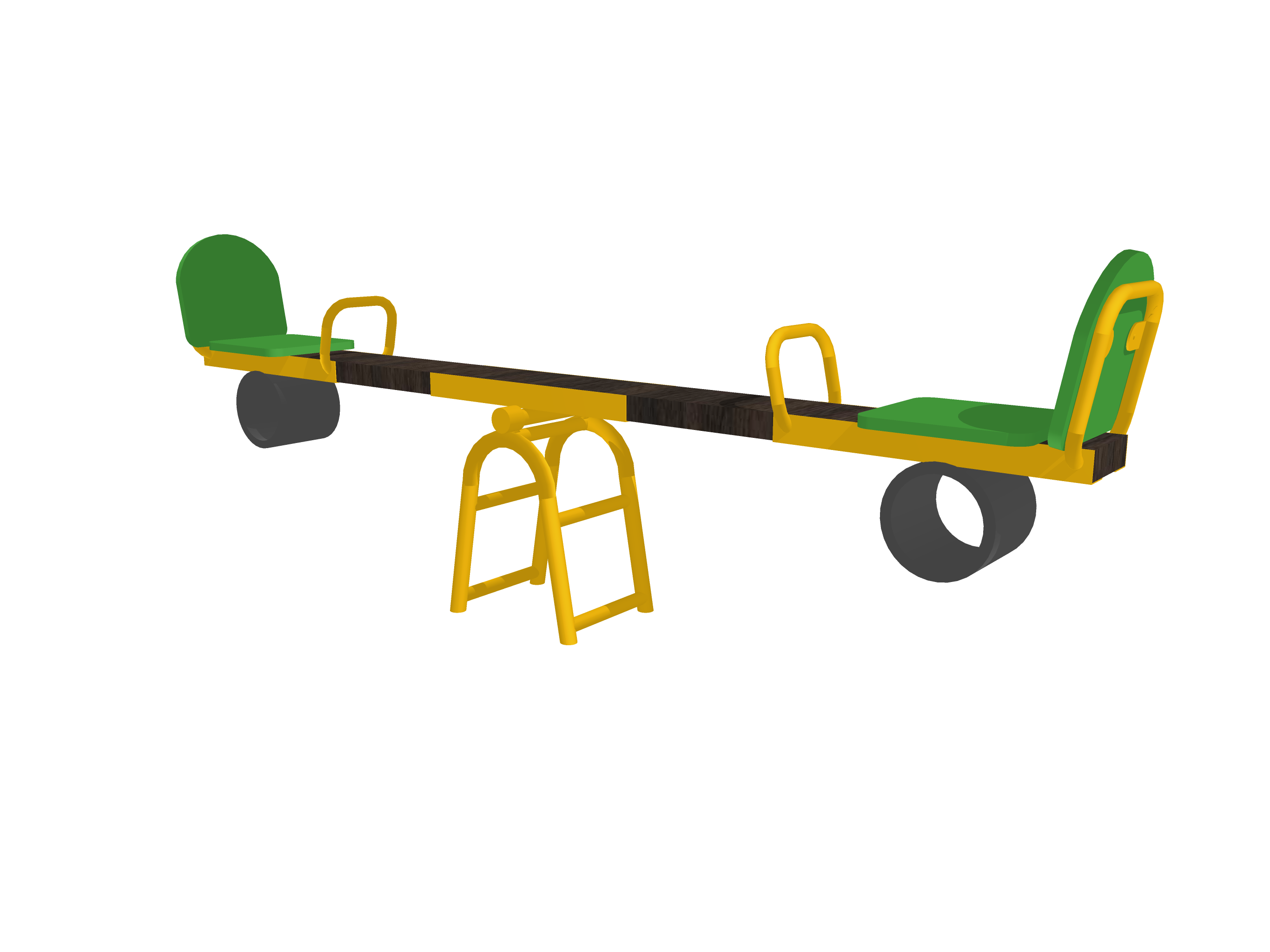 Сиденья с высокой спинкой и удобными ручками, мягкие резиновые демпферы на концах балки. Конструкция рассчитана на интенсивную эксплуатацию и соответствует стандартам безопасности.