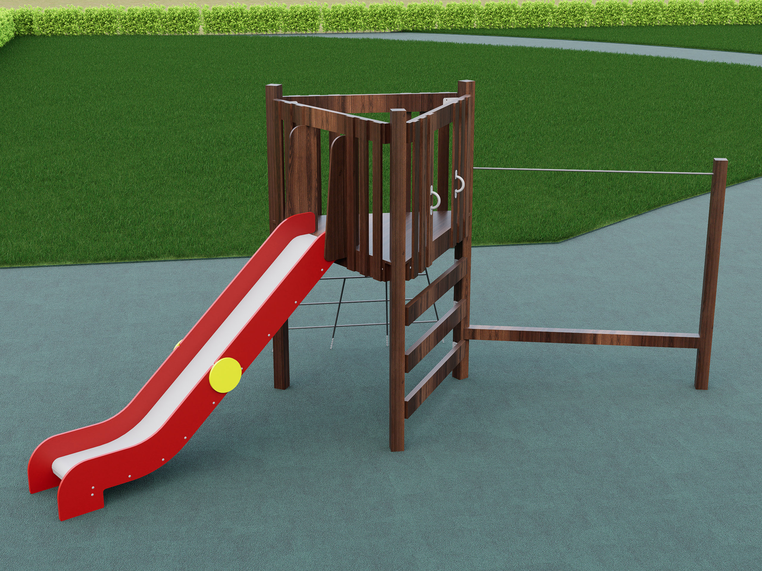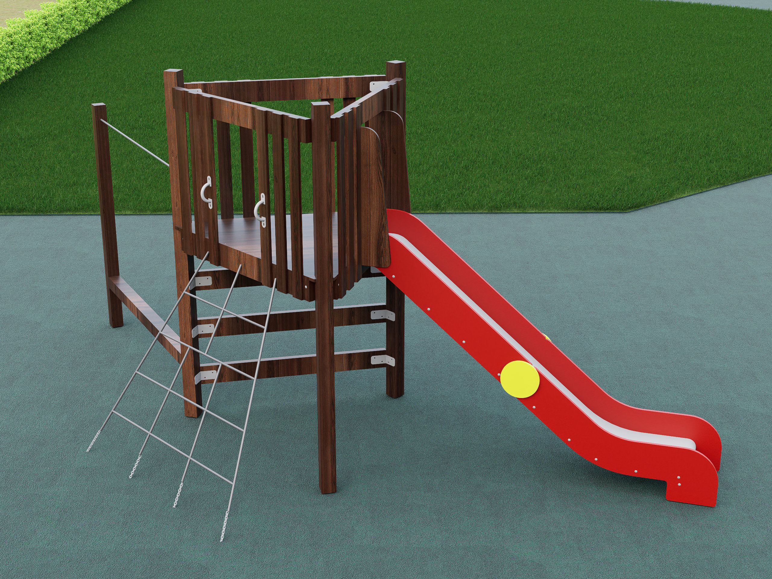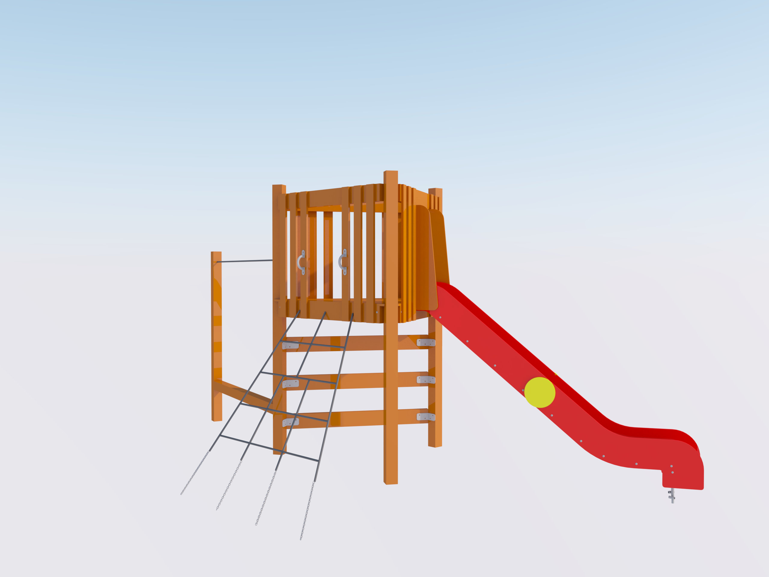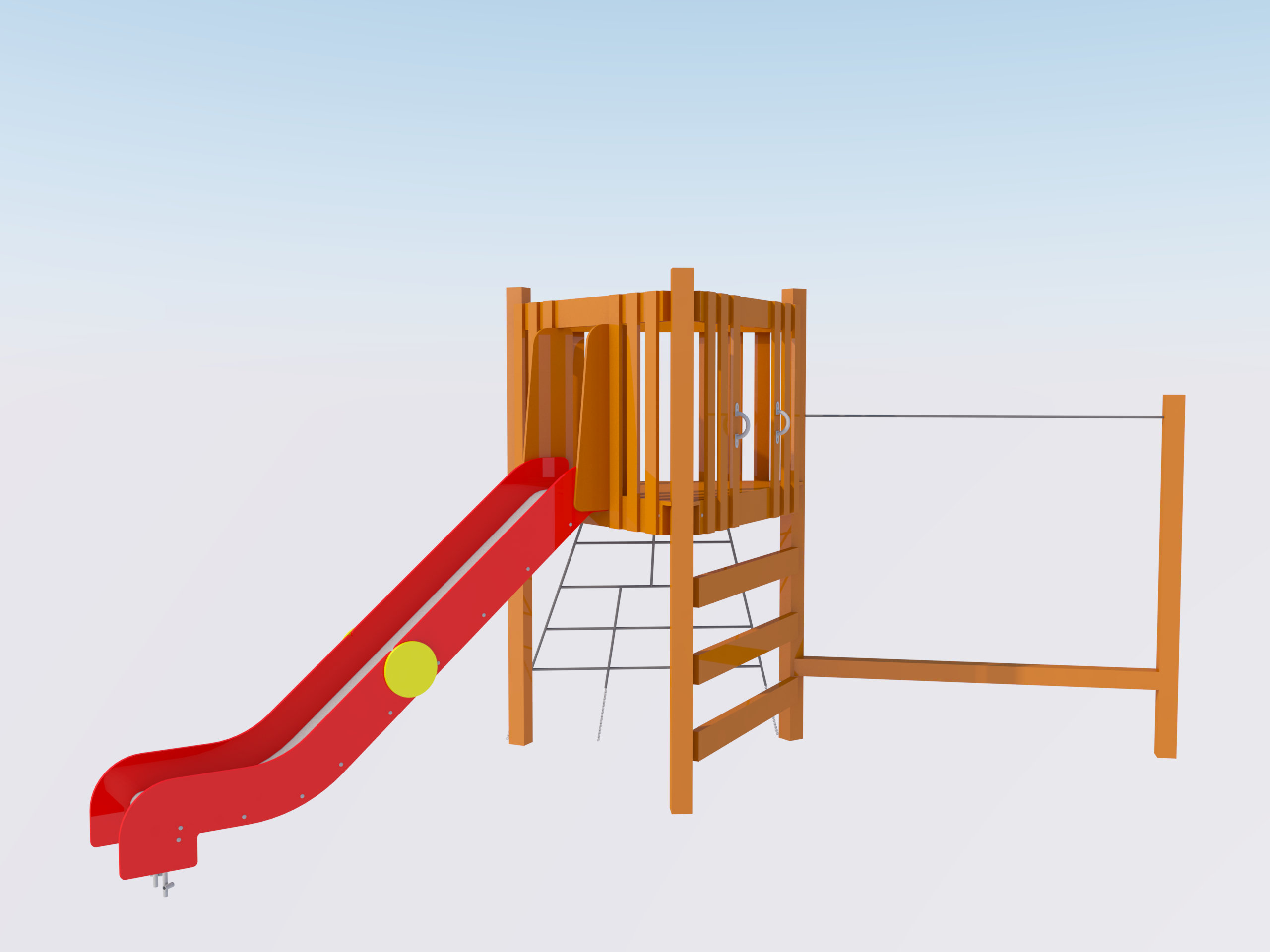 Детский игровой комплекс с горкой — отличное решение для активного отдыха на свежем воздухе. Конструкция включает безопасную платформу с ограждением, удобную лестницу и яркую пластиковую горку для веселых спусков. Прочный деревянный каркас обеспечивает надежность и устойчивость, а компактные размеры позволяют установить комплекс даже на небольшом участке. Идеально подходит для двора, дачи и детских площадок.