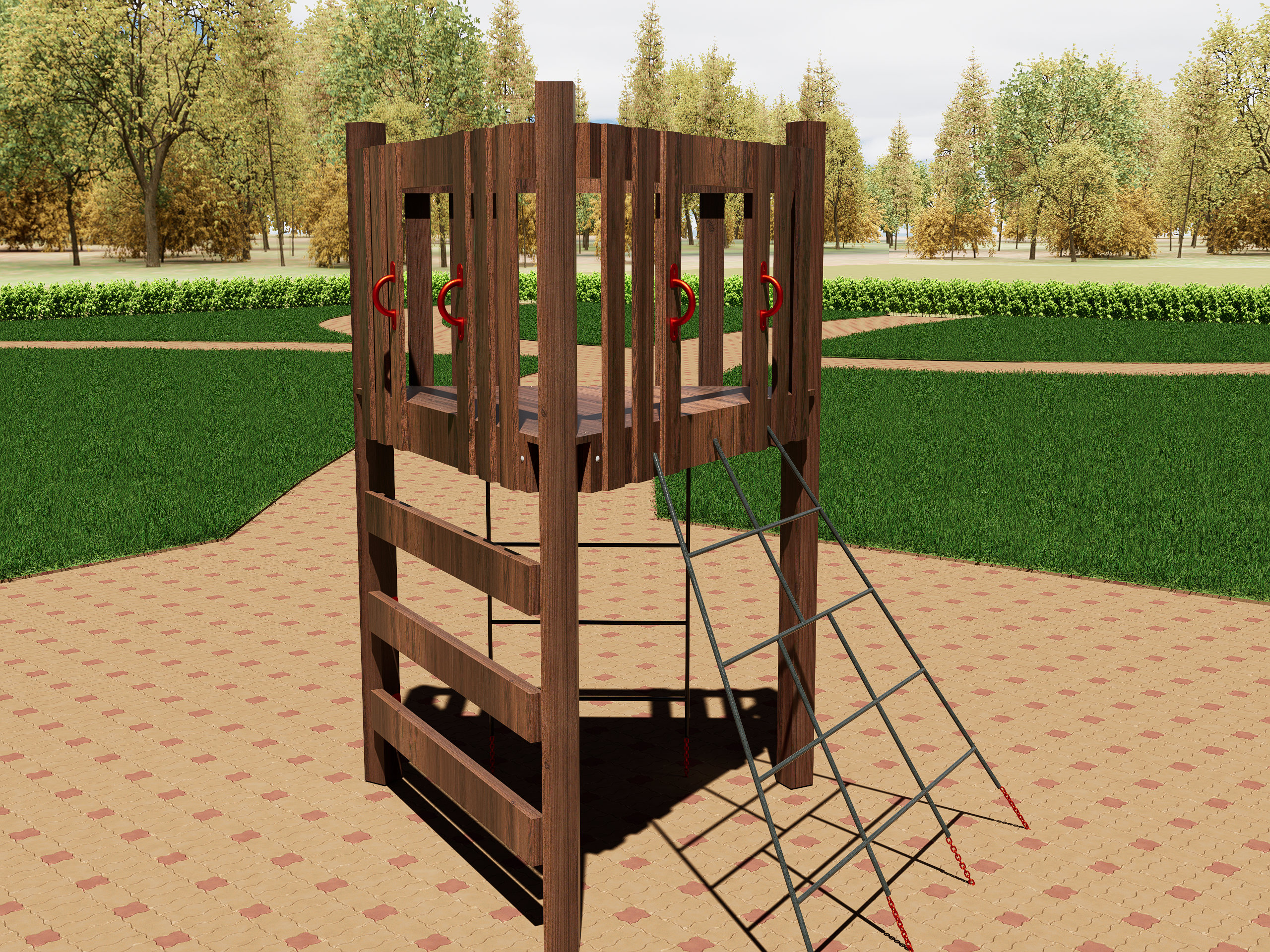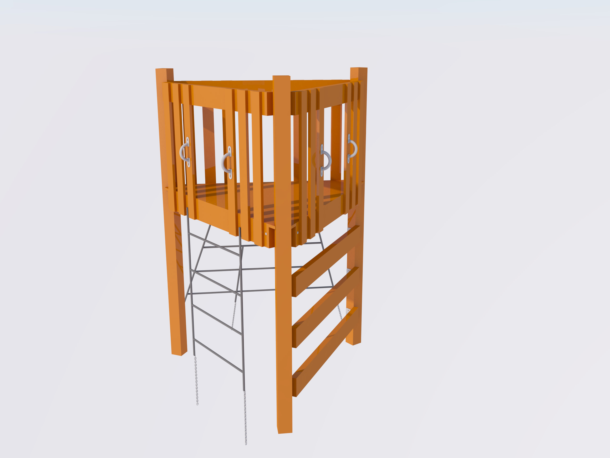 Детская игровая башня из дерева — компактный и функциональный элемент для площадки. Оснащена огражденной платформой, удобной лестницей и прочным каркасом, обеспечивающим безопасность и устойчивость. Идеально подходит для активных игр, развития координации и воображения. Подходит для установки во дворе, на даче или в детских зонах отдыха.