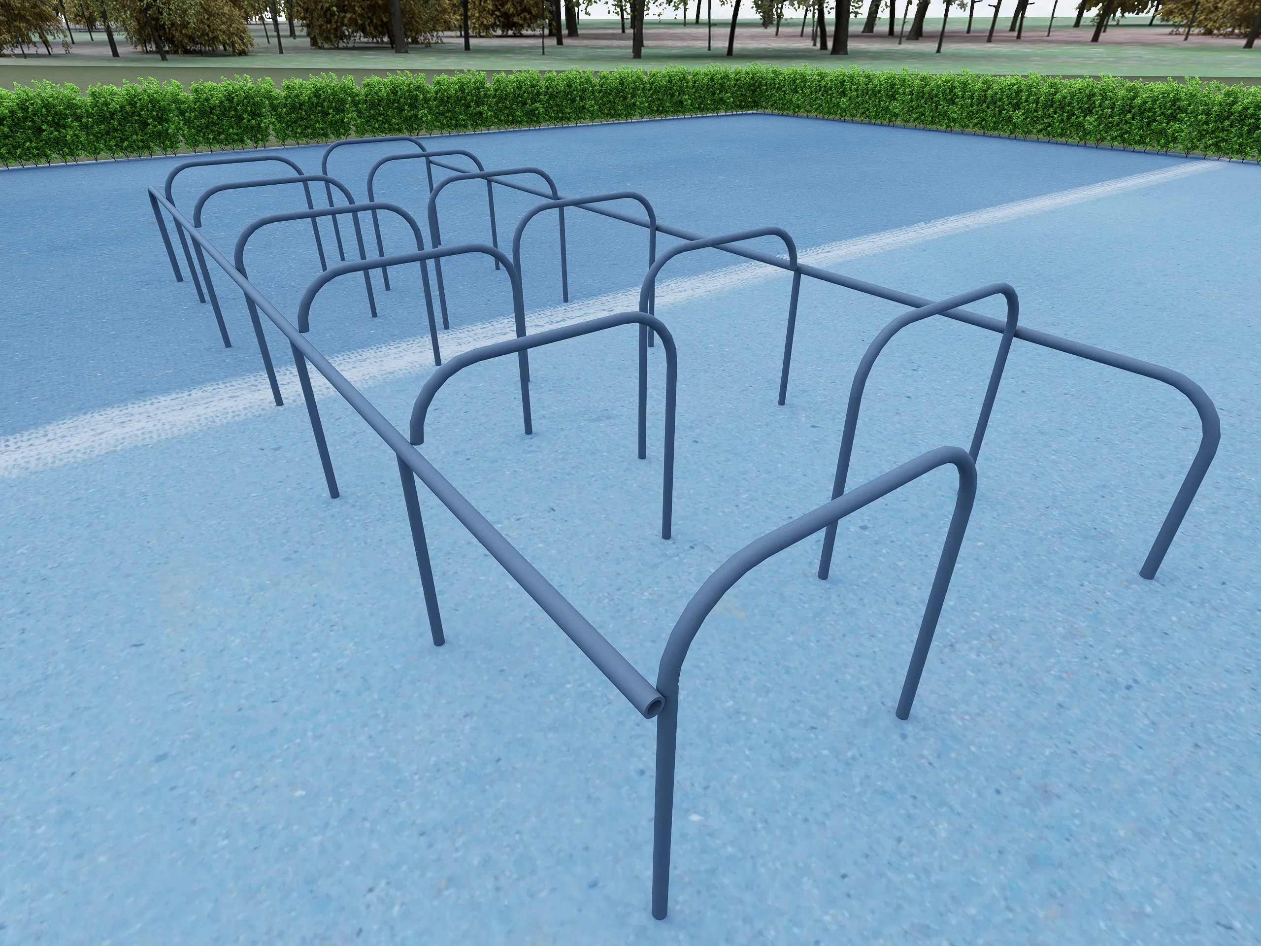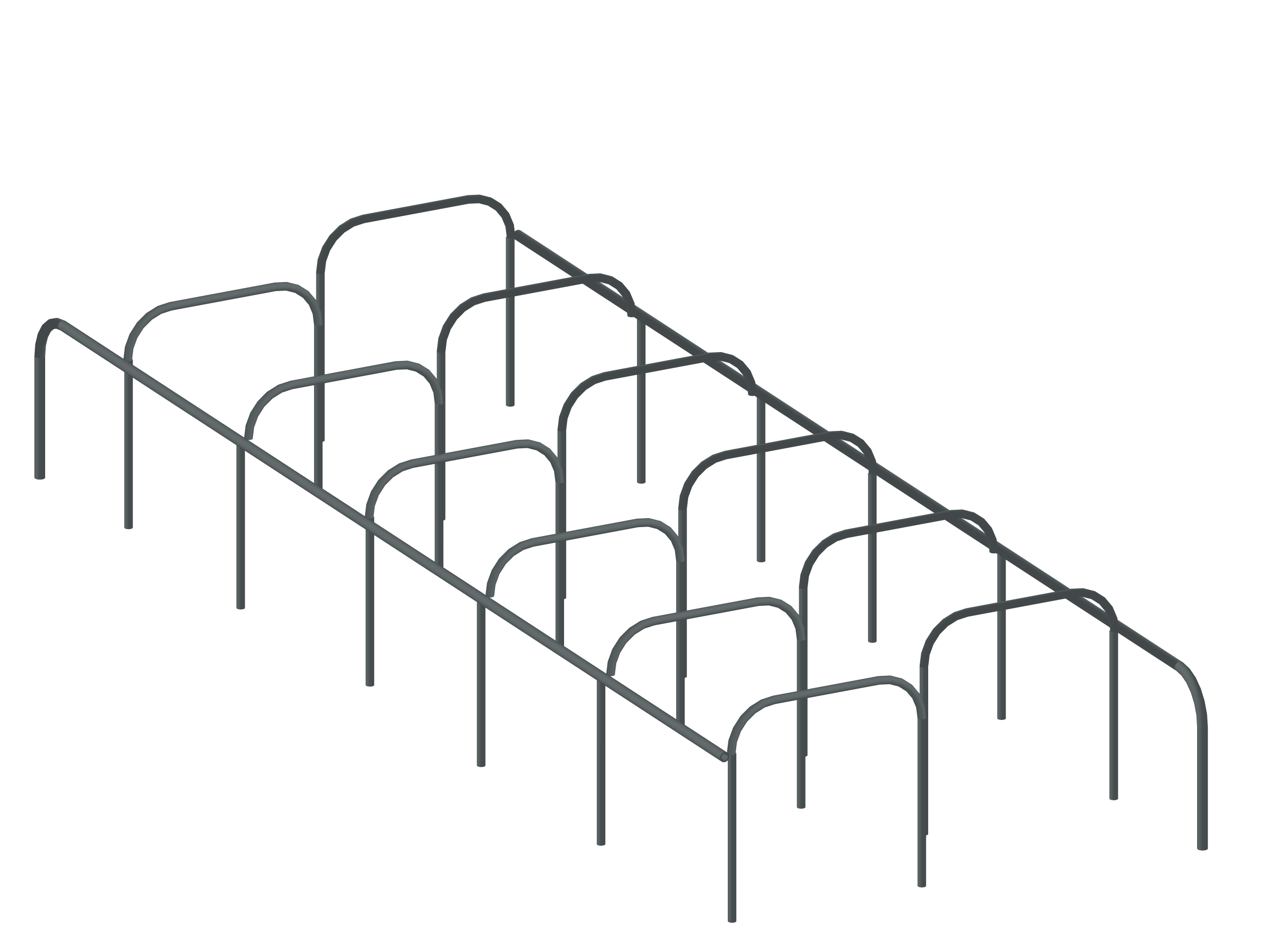 Лабиринт для детской площадки — компактная металлическая конструкция серого цвета из параллельных дугообразных арок, соединённых горизонтальными перекладинами. Создаёт запутанный путь для прохождения, лазания и развития ловкости, координации и пространственного мышления. Идеальный элемент для активных игр и приключений на свежем воздухе!