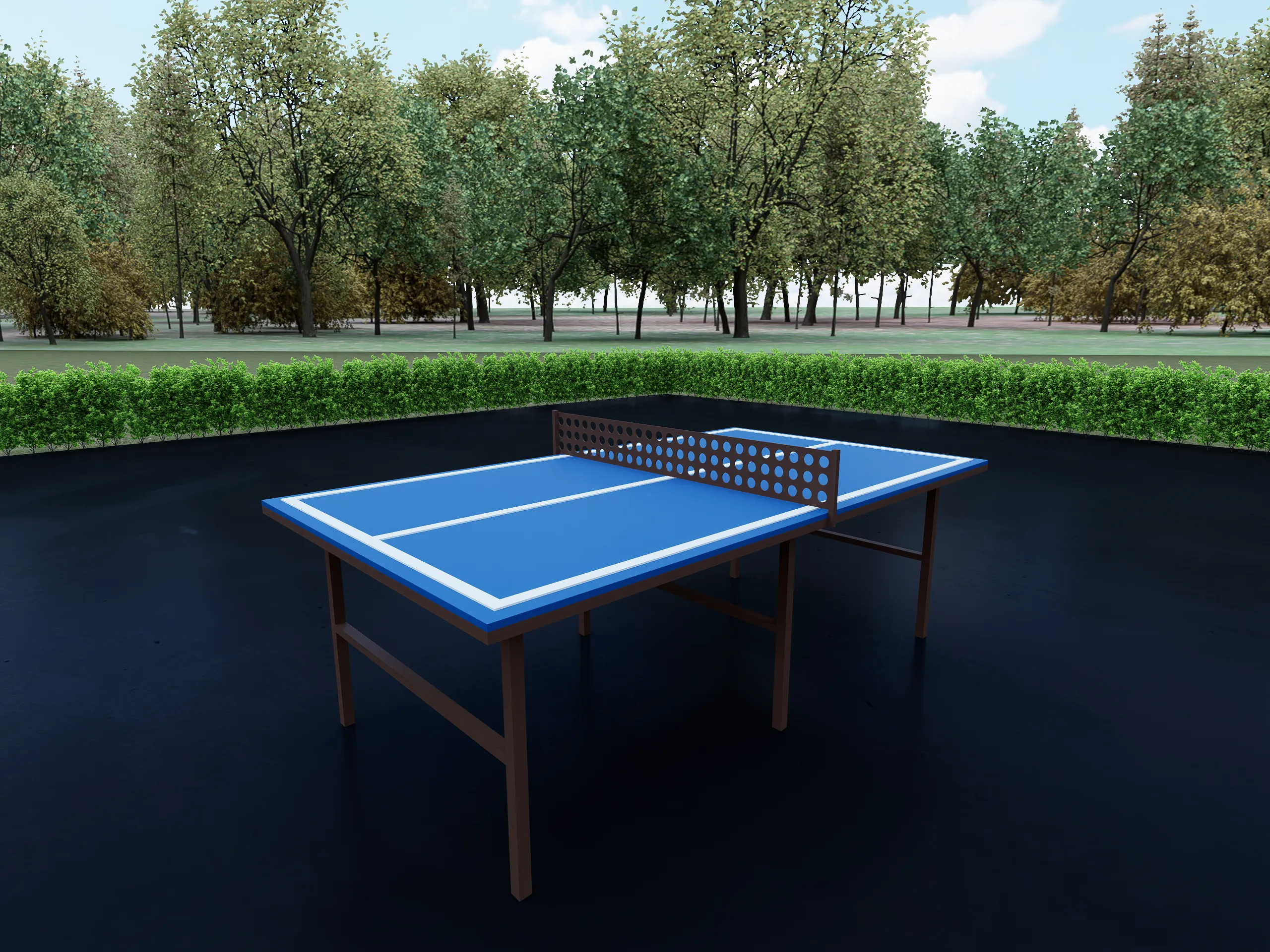Классический стол для настольного тенниса уличного исполнения с прочной металлической рамой и столешницей из влагостойкого материала.