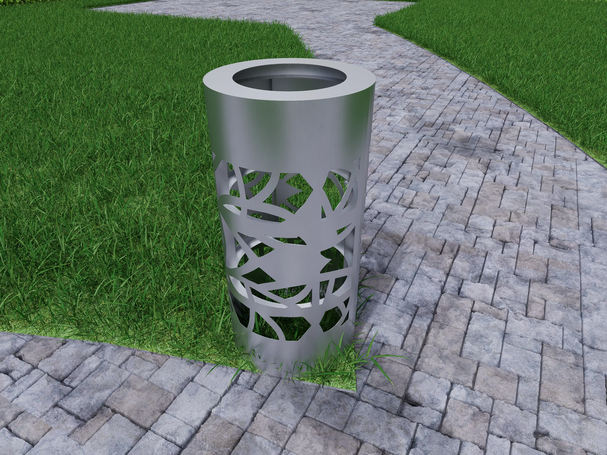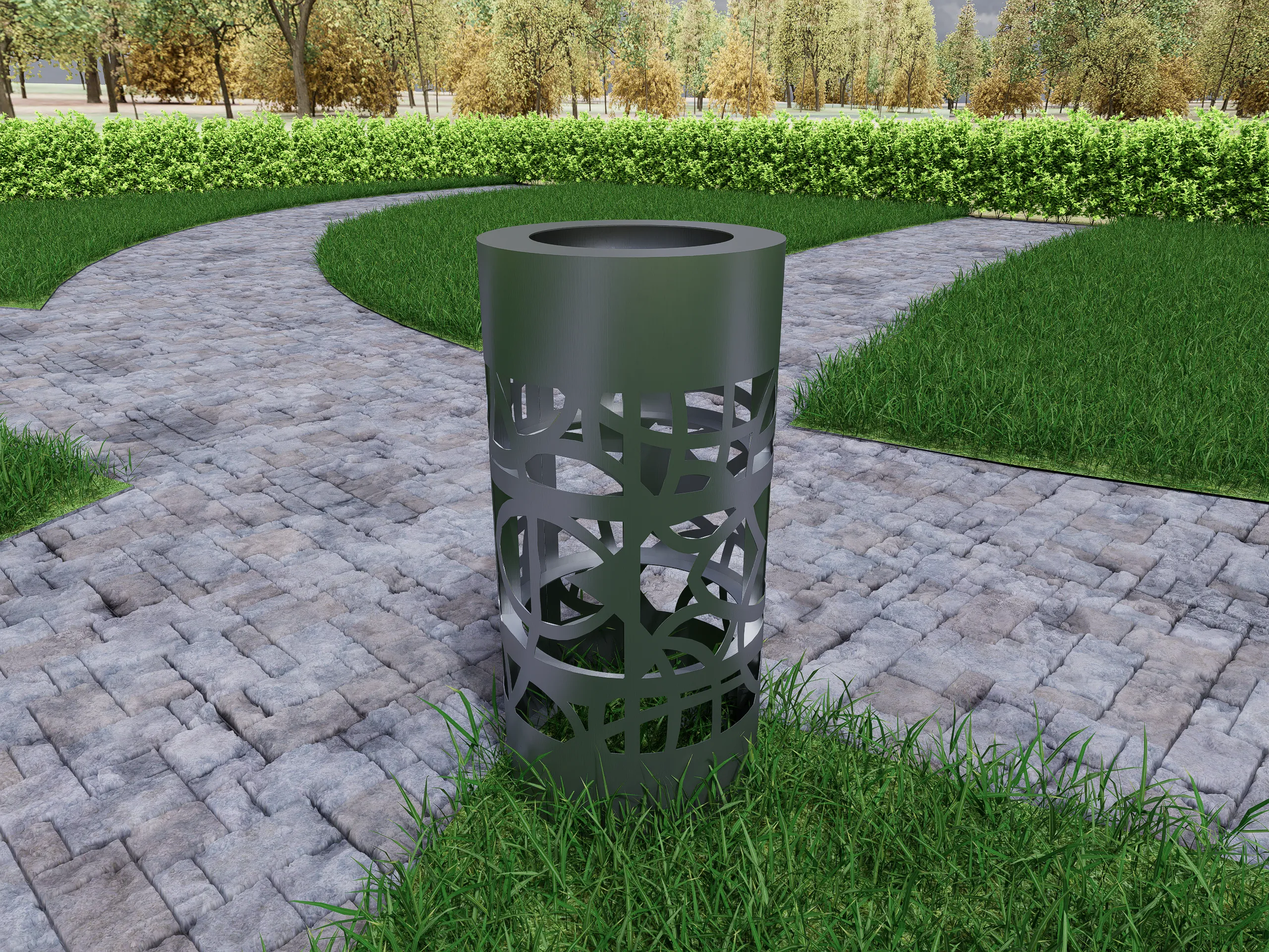 Уличная металлическая урна с декоративной перфорацией — современное решение для парков, скверов и городских пространств. Прочный корпус из стали устойчив к погодным воздействиям, а оригинальный дизайн с узором придаёт эстетичный вид и выделяет изделие в ландшафте. Подходит для благоустройства общественных и частных территорий.